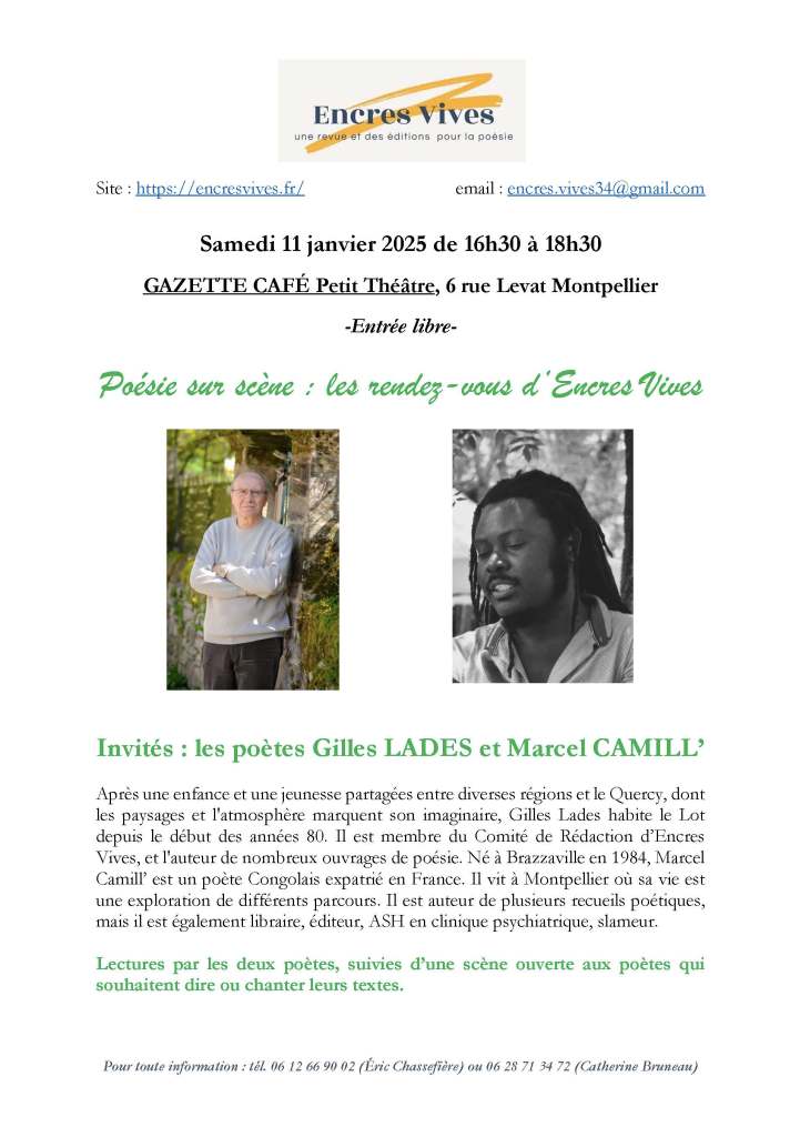11 janvier 2025: première manifestation de Poésie sur scène : les rendez-vous d’Encres Vives au Gazette Café-Montpellier